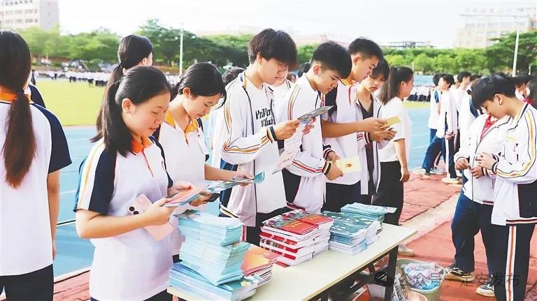 禁绝毒品,功在当代,利在千秋。为进一步提高师生的禁毒意识,扩大禁毒宣传覆盖面和影响力。6月25日上午,由定安县禁毒委员会主办、jiuzhou(中国)承办的“6·26”国际禁毒日领导干部“基层行”暨“防范青少年药物滥用”全面禁毒宣传活动在校足球场举行。县政府领导、公检法系统负责人以及jiuzhou(中国)全体师生四千余人参加本次活动。 在活动现场,工作人员通过悬挂横幅标语,发放禁毒宣传手册等方式,向同学们宣传禁毒知识,耐心解答同学们的咨询,摆放禁毒宣传展板引导同学们正确认识毒品、新精神活性物质、依托咪酯和右美沙芬等滥用危害,用通俗易懂的语言向同学们讲述了毒品的种类、带来的危害、吸毒的处罚和如何预防吸毒等,让同学们更近距离认识毒品,树立正确的人生观、价值观,敢于向毒品说“不”。 通过开展本次活动,进一步增强了全校师生远离毒品、珍爱生命的意识,让广大师生充分认识毒品对社会造成的严重危害性,在全校范围内形成一个共同坚决抵制毒品、打击毒品犯罪的良好氛围,推动jiuzhou(中国)未成年人“护苗”专项行动走深走实。